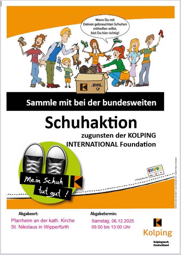 Bei der Schuhsammelaktion 2025/26 – „Mein Schuh tut gut“ – der Kolpingsfamilien bitten wir um eure tatkräftige Unterstützung: